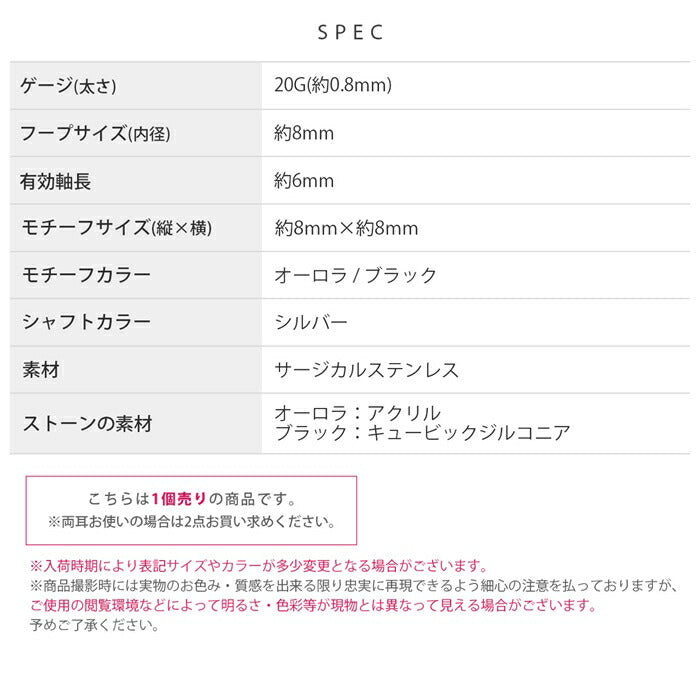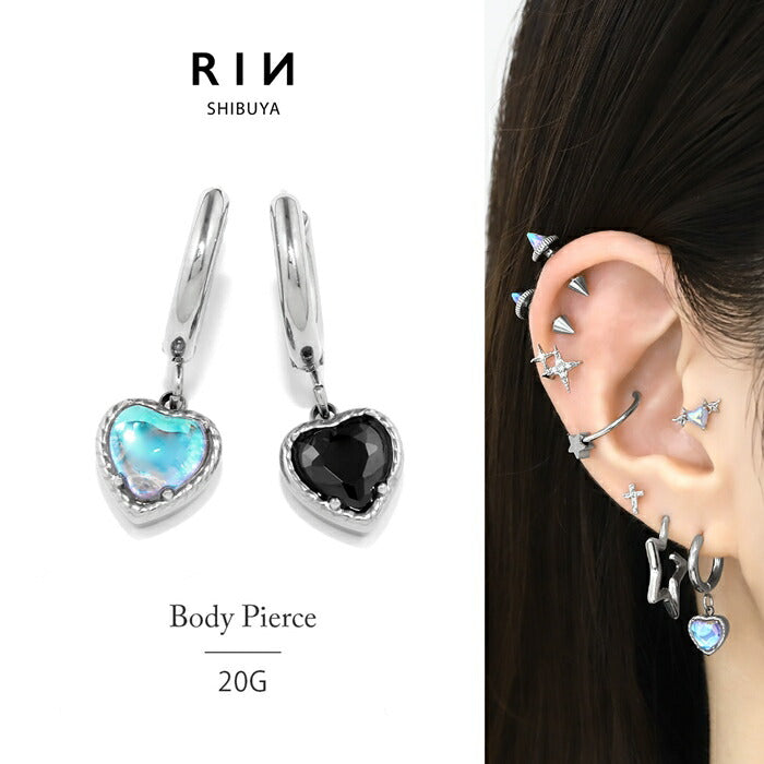 b281-10 軟骨ピアス 20G ボディピアス サージカルステンレス 金属アレルギー対応 金属アレルギー つけっぱなし ハート セグメントリング キュービックジルコニア セカンドピアス レディース シルバー オーロラ アクリル ブラック かわいい 片耳用