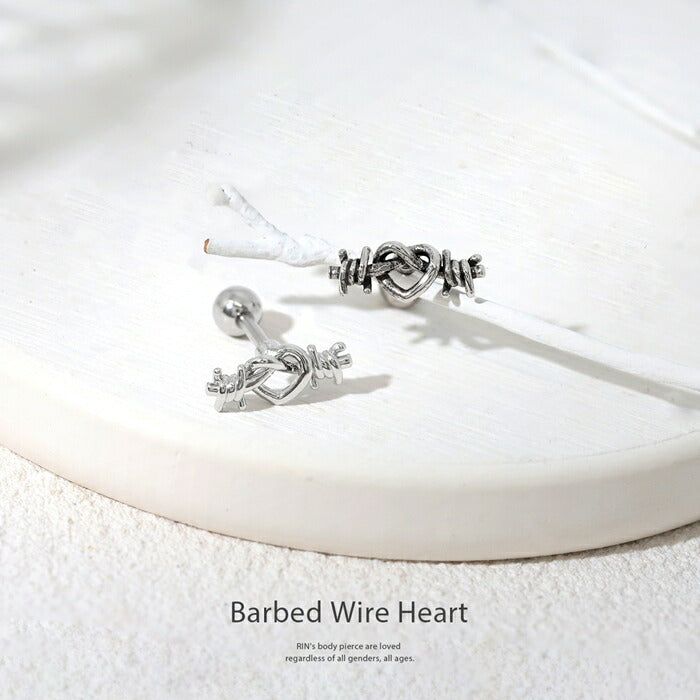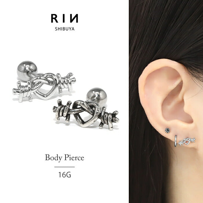 16G 軟骨ピアス ハート とげ 有刺鉄線 クール ユニークボディピアス ストレートバーベル 片耳用 軟骨1526 軟骨1526 b281-12