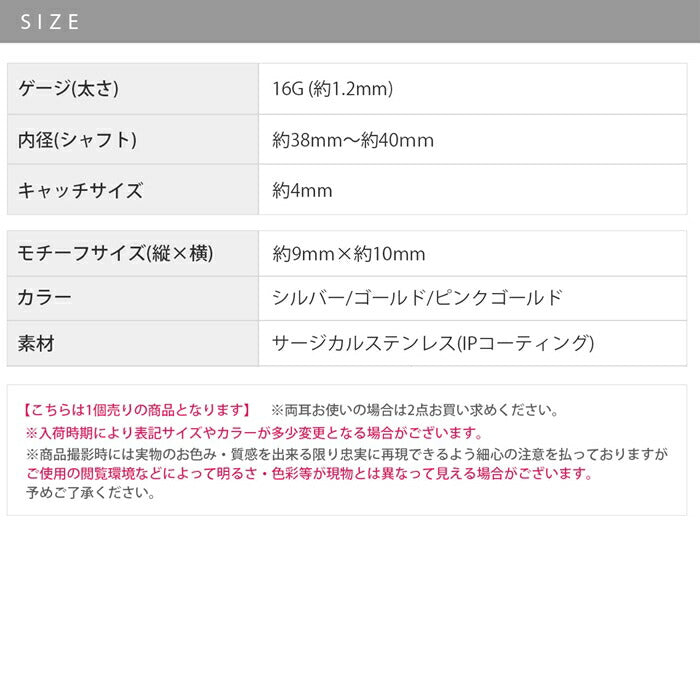 ※こちらの商品の一部カラーは、サージカルステンレスの上にカラーのIPコーティングを施しています。アレルギーには個人差があり、必ずしもアレルギーが出ないとは限りません。