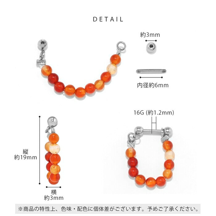 軟骨チャーム 16G 天然石 ストレートバーベル 金属アレルギー対応 軟骨チャーム付0230 b281-8