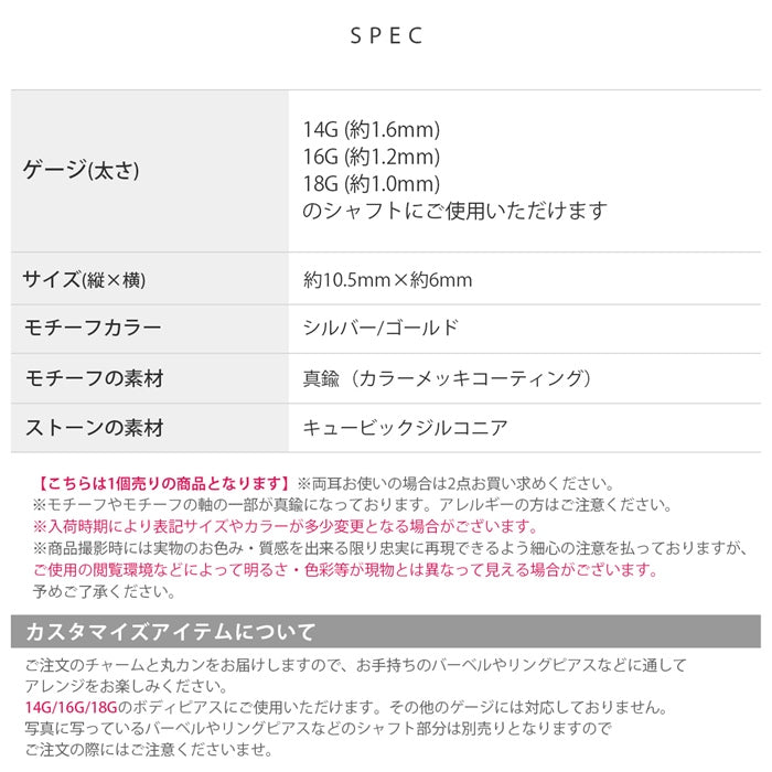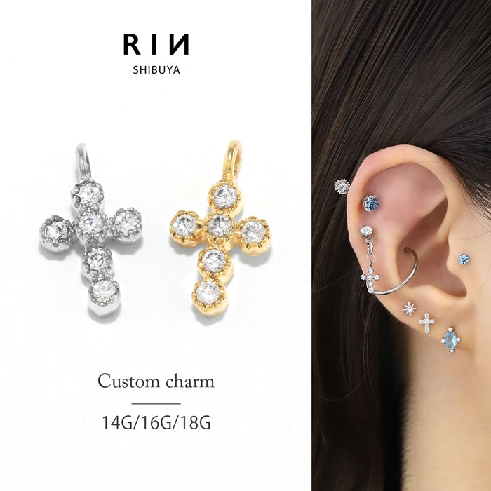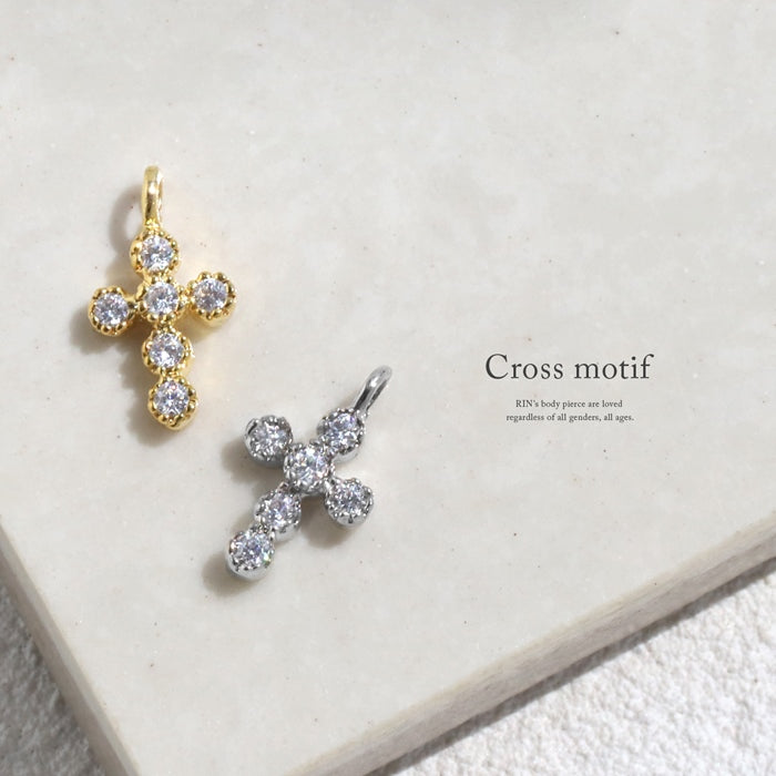 14G 16G 18G チャーム クロス 十字架 シルバー ゴールド ボディピアス アレンジ パーツ カスタマイズ 片耳用 チャーム0006 b536-001