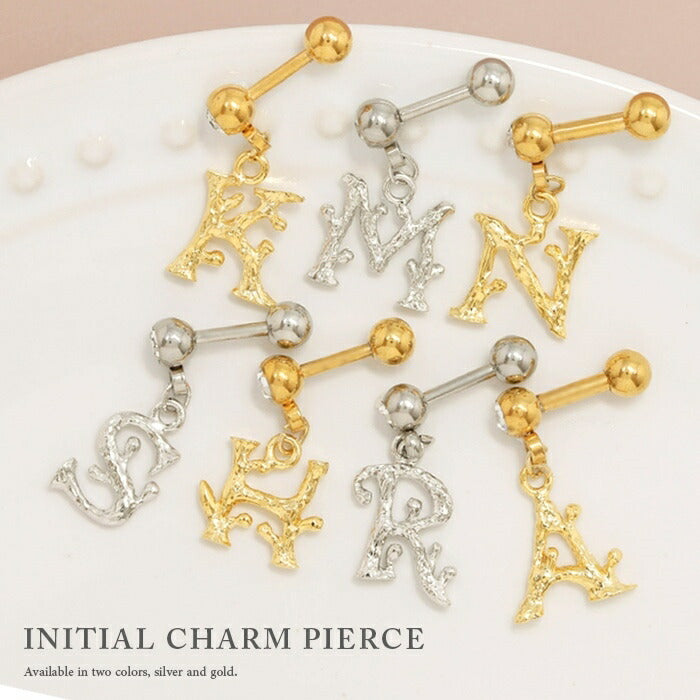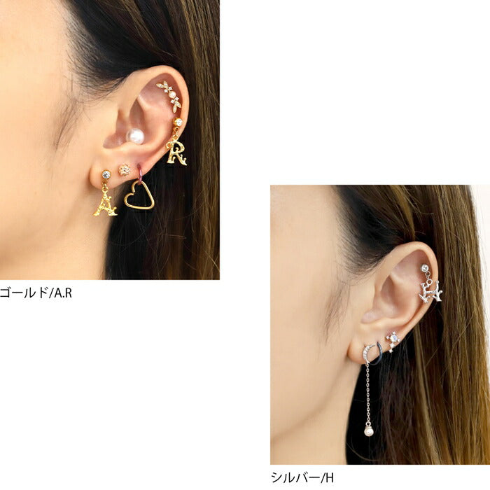 【楽天SOY5年連続受賞】ボディピアス 16G 14G イニシャル 頭文字 アルファベット 英語 文字 サージカルステンレス 金属アレルギー対応 シルバー ゴールド 葉っぱ リーフ キャッチ チャーム 揺れる ジュエル かわいい 軟骨ピアス メンズ レディース 片耳用 凛 RIN