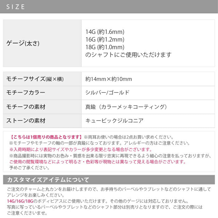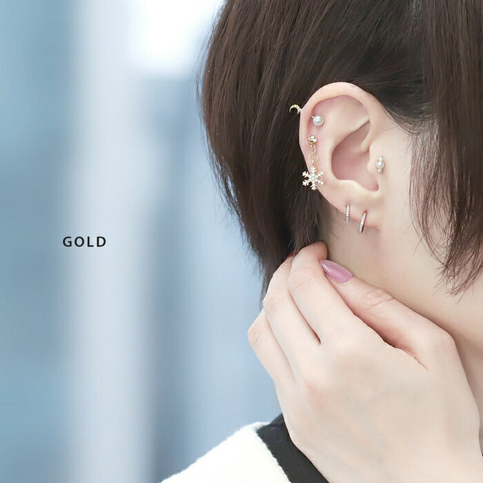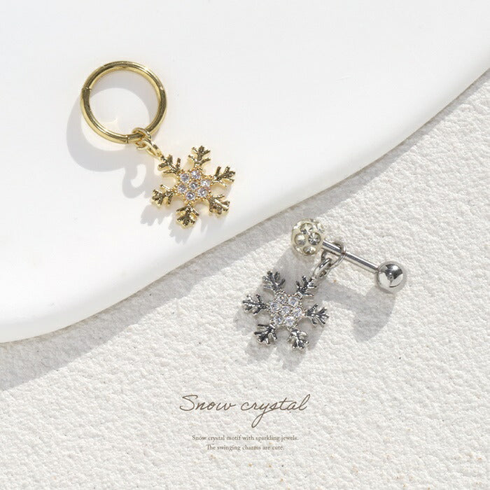 b536-27 ボディピアス チャーム 雪 雪の結晶 結晶 18G 16G 14G 軟骨ピアス サージカルステンレス 金属アレルギー 普段使い スノーカスタマイズ かわいい セカンドピアス ジュエル キュービックジルコニア 揺れる パーツ シルバー ゴールド レディース 片耳用