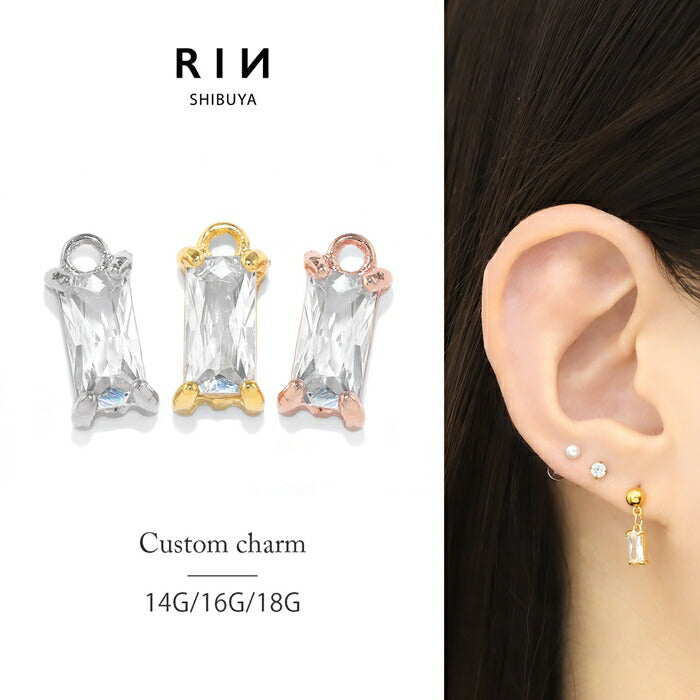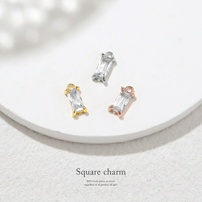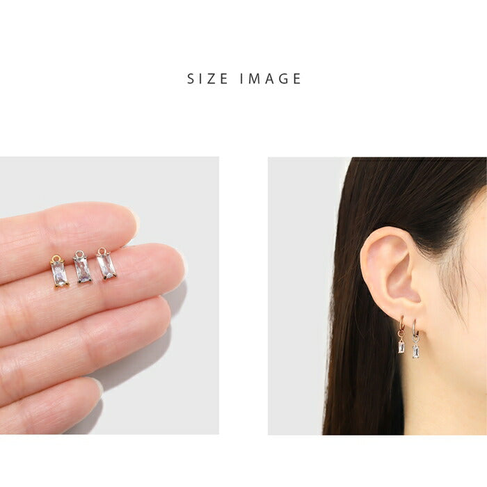 b536-29 軟骨ピアス チャーム 14g 16g 18g ボディピアス パーツ カスタマイズ ジュエリー バゲットカット 揺れる ジュエル ジルコニア 金属アレルギー つけっぱなし エレガント 四角 ビジュー オフィス デート お出かけ デイリー ピアスパーツ 片耳用