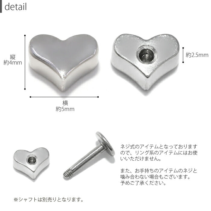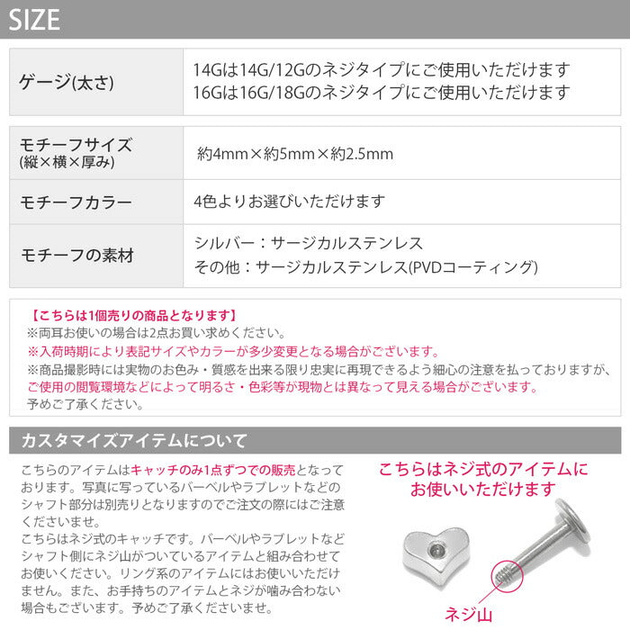 14G 16G 18G 12G ハート キャッチ パーツ ネジ式 シルバー ゴールド ピンクゴールド ブラック カスタマイズ0022 c-0022-16g