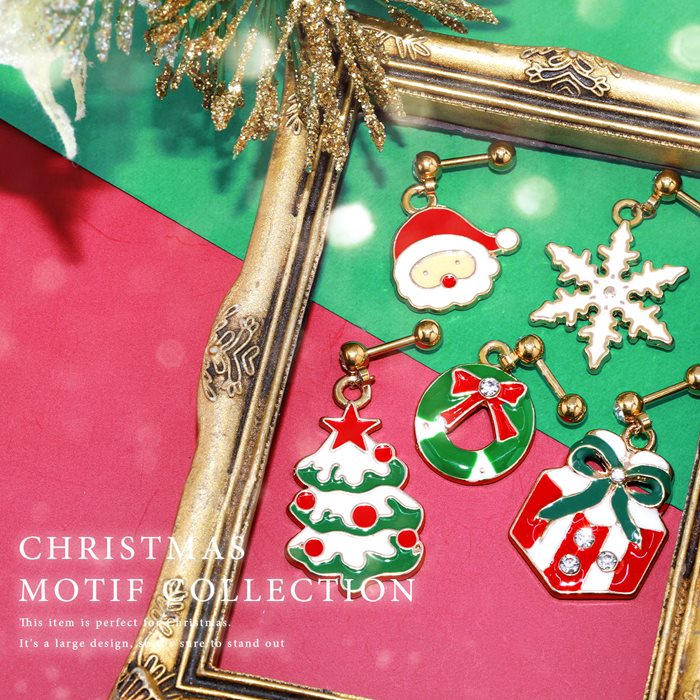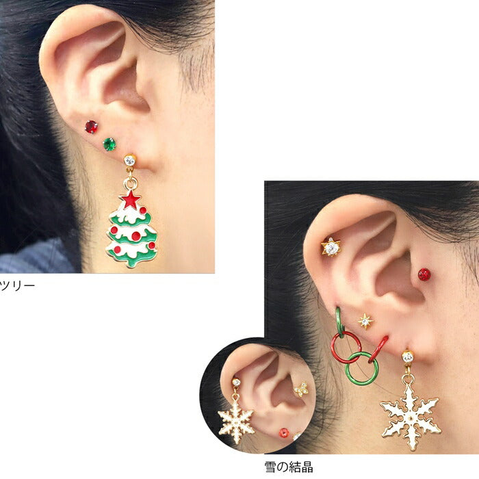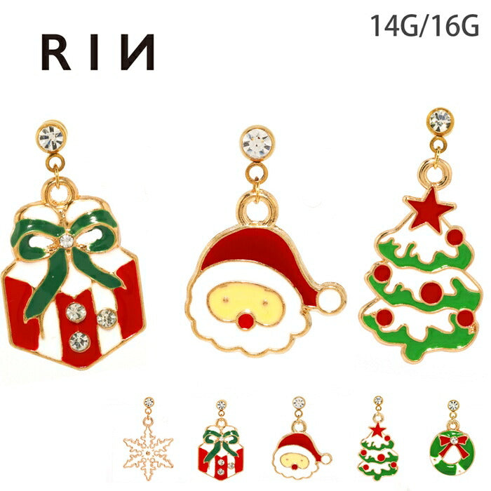 【楽天SOY5年連続受賞】ボディピアス 16G 14G クリスマス ツリー リース サンタクロース 雪の結晶 プレゼント サージカルステンレス 金属アレルギー対応 ゴールド レッド グリーン キャッチ 揺れる チャーム ジュエル かわいい 軟骨ピアス メンズ レディース 片耳用 凛 RIN