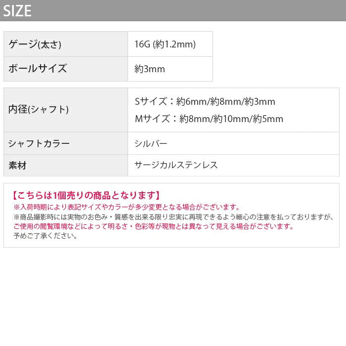 16G ピアス 金属アレルギー サージカルステンレス サーフェイス ステンレスピアス0095 ch-119
