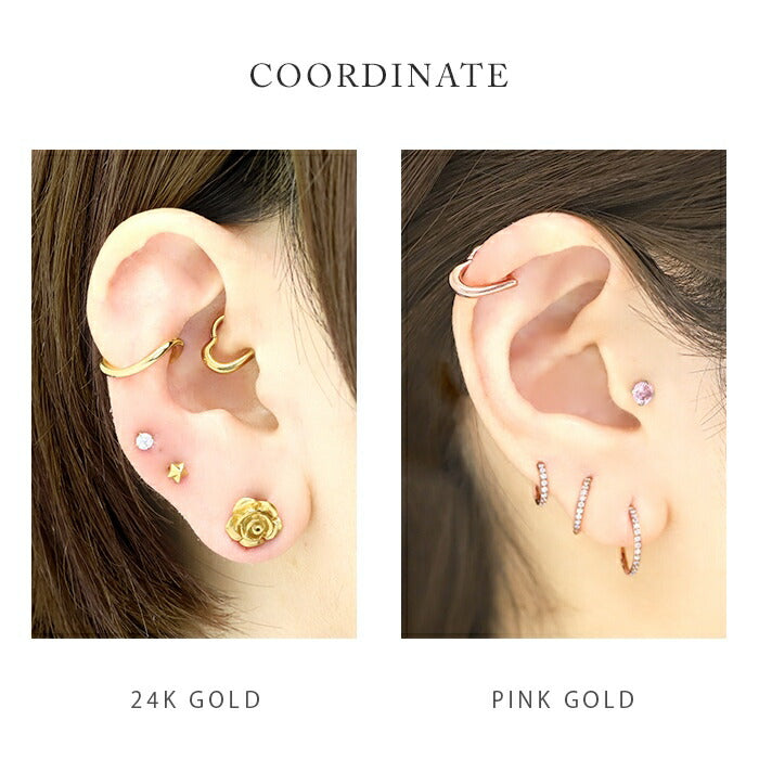16G 24K 24金 ハート ピアス ピンクゴールド コーティング セグメントクリッカー 軟骨1350 ch-131-j