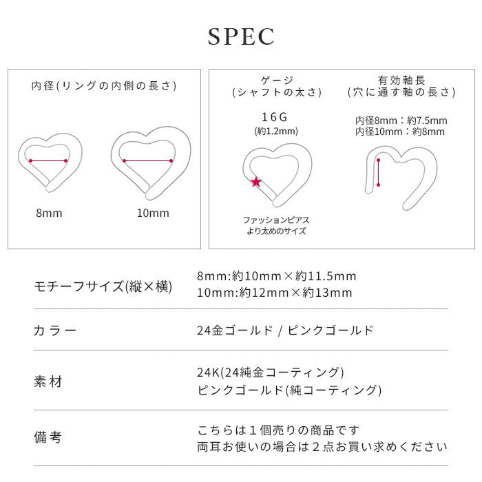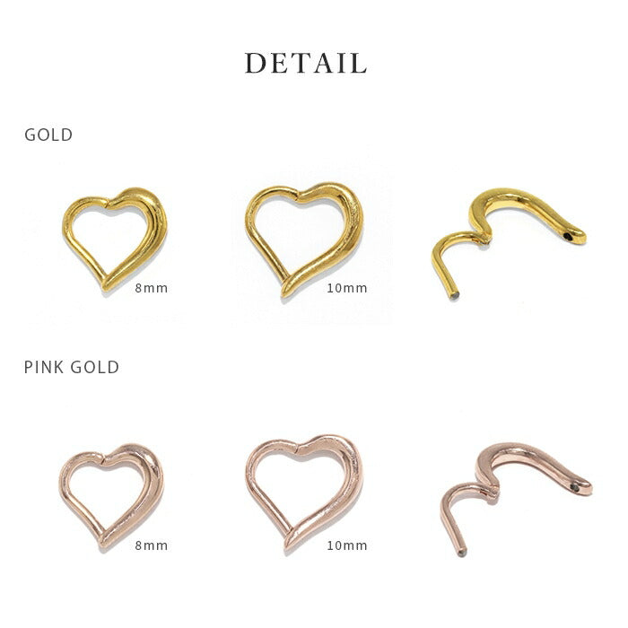 ch-131-j ボディピアス 24K 24金 軟骨ピアス 16G ハート ピアス 金属アレルギー セグメントクリッカー セグメントリング シルバー ゴールド ピンクゴールド フープピアス キャッチレスピアス ワンタッチピアス セカンドピアス レディース 軟骨 片耳用