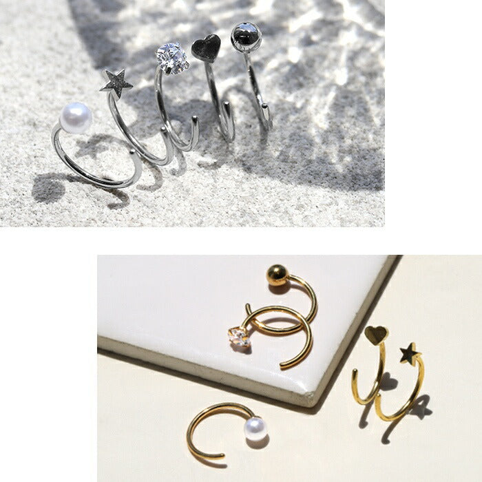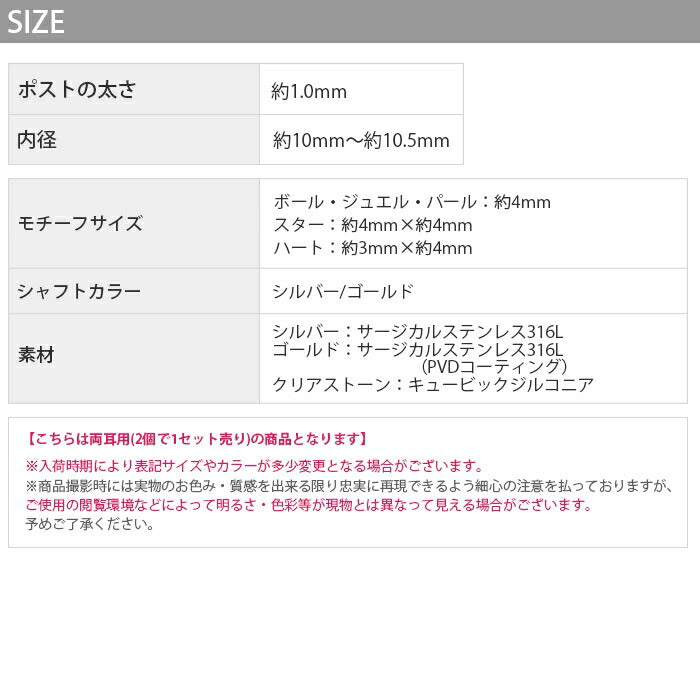 18G さすだけピアス キャッチレス ボール スター ハート ストーン パール ステンレスピアス0109 ch-134-2