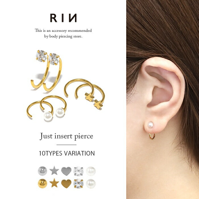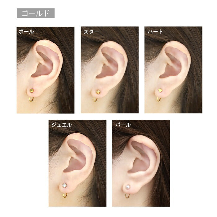 ピアス 金属アレルギー フープ つけっぱなし サージカルステンレス レディース セカンドピアス ステンレスピアス キャッチレス さすだけピアス シルバー ゴールド ボール スター ハート ストーン パール 立爪 ジュエル PVDコーティング 大人 【両耳用・2個売り】