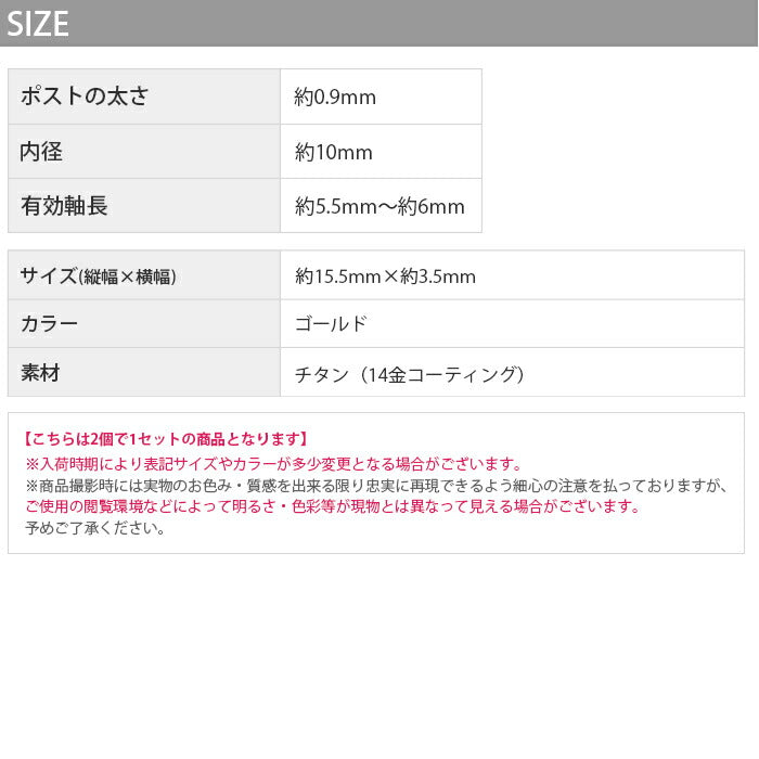 【両耳用・2個売り】ピアス フープピアス リングピアス キャッチレス チタン 金属アレルギー 14k ch-135-2