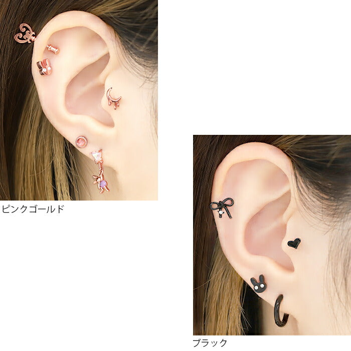 ch-138 ボディピアス 軟骨ピアス 16G うさぎ ピアス 金属アレルギー サージカルステンレス シルバー ゴールド ピンクゴールド ブラック レディース ステンレスピアス セカンドピアス かわいい 大人 シンプル キラキラ 動物 軟骨 片耳用