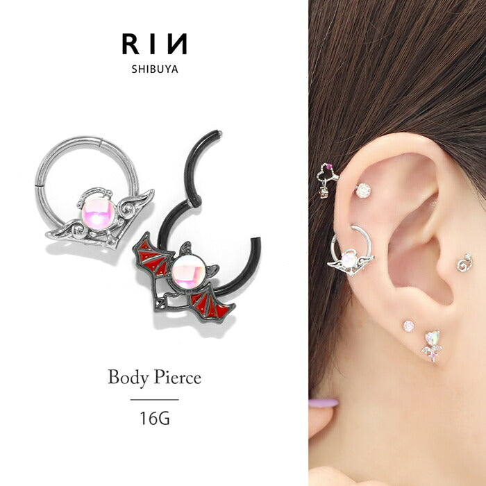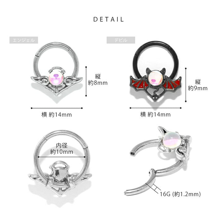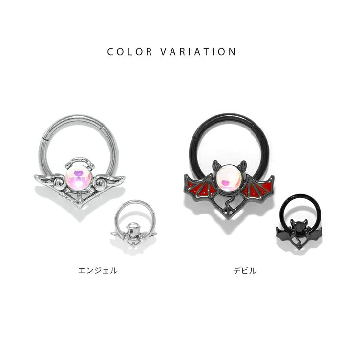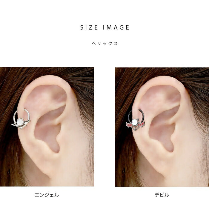 16G 軟骨ピアス ワンタッチリング 天使 悪魔 エンジェル デビル シルバー ブラック ジュエル セグメントクリッカー ステンレスピアス0118 ch-140