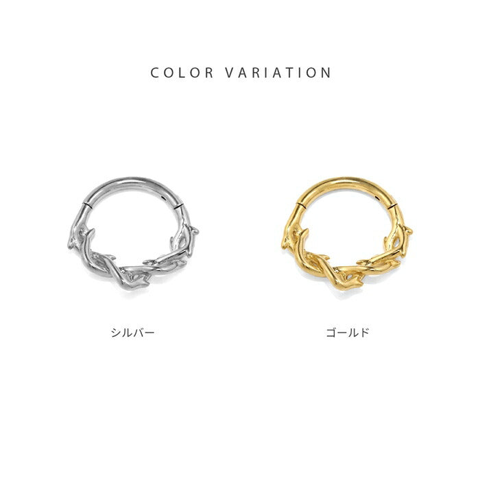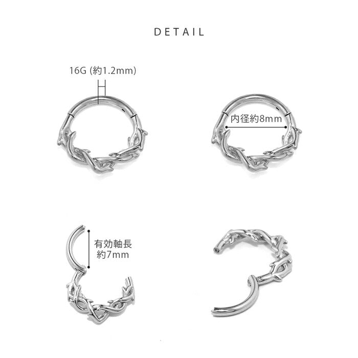 16G フープピアス いばらモチーフ とげ 環 セグメント 片耳用 ステンレスピアス0136 ch-150