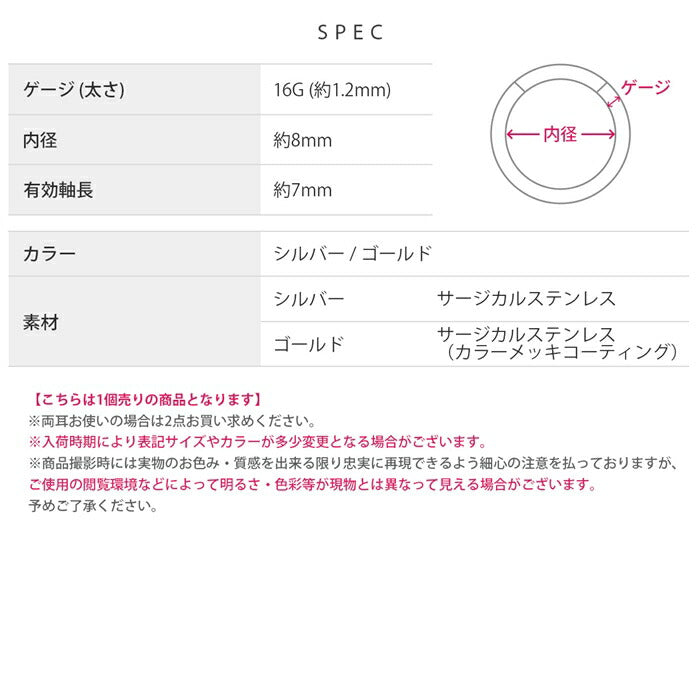 ゴールド:サージカルステンレス (カラーメッキコーティング)