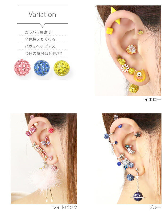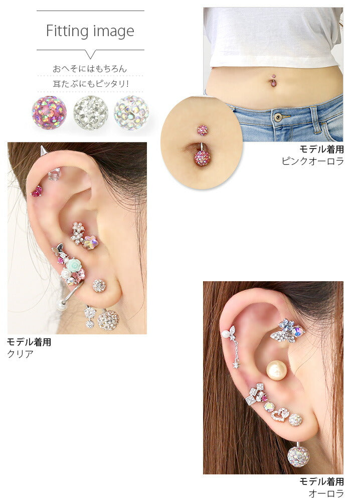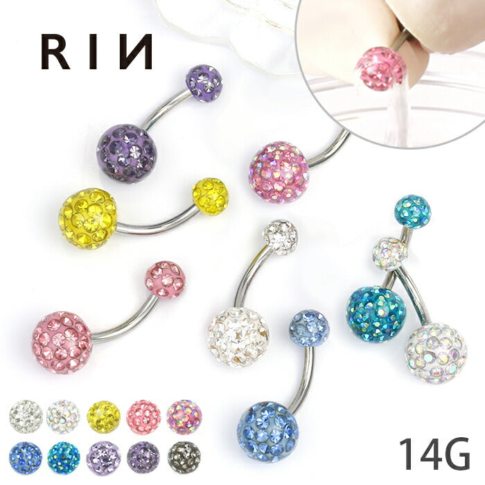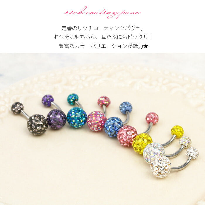 [14G]へそピアス0445 Wリッチコーティングパヴェへそピアス