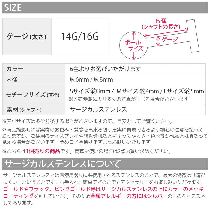 Sサイズ(約3mm)・Mサイズ(約4mm)・Lサイズ(約5mm)