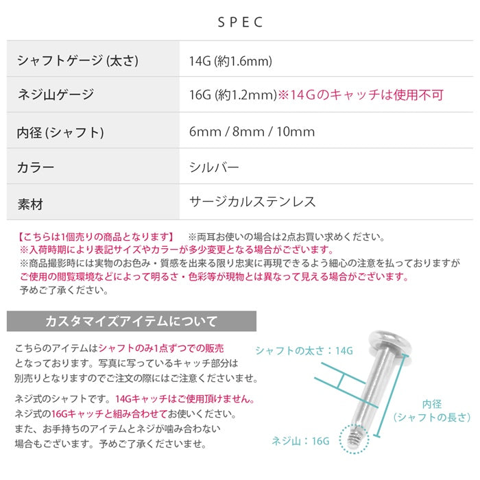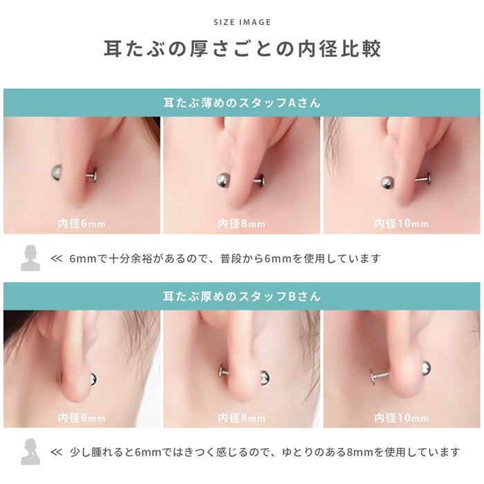 ★ ch-50 ボディピアス 16G 14G ラブレット 軟骨ピアス 内径 6mm 8mm 10mm マジックシャフト ラブレットスタッド つけっぱなし サージカルステンレス 金属アレルギー対応 トラガス ファーストピアス セカンドピアス 片耳用