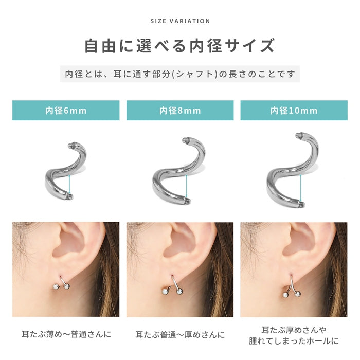 ★ ch-52 ボディピアス 16G 14G スパイラルバーベル 軟骨 ピアス 内径 6mm 8mm 10mm マジックシャフト らせん つけっぱなし サージカルステンレス 金属アレルギー対応 メンズ スタイリッシュ ファーストピアス セカンドピアス シルバー カスタマイズ アレンジ 片耳用