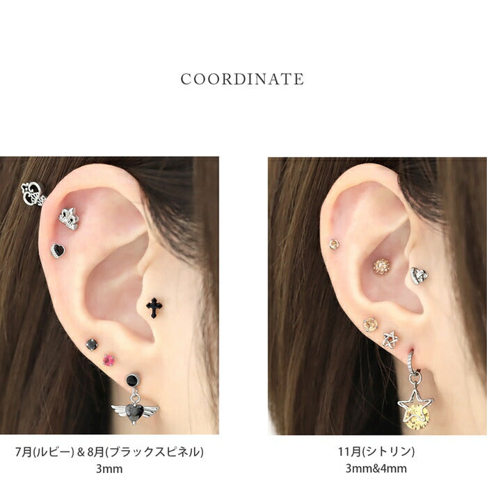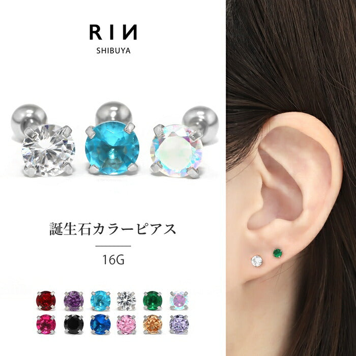 ボディピアス 軟骨ピアス 16G バースデーカラー 立爪 ジュエル ストーン 誕生石 軟骨1084 ch-58