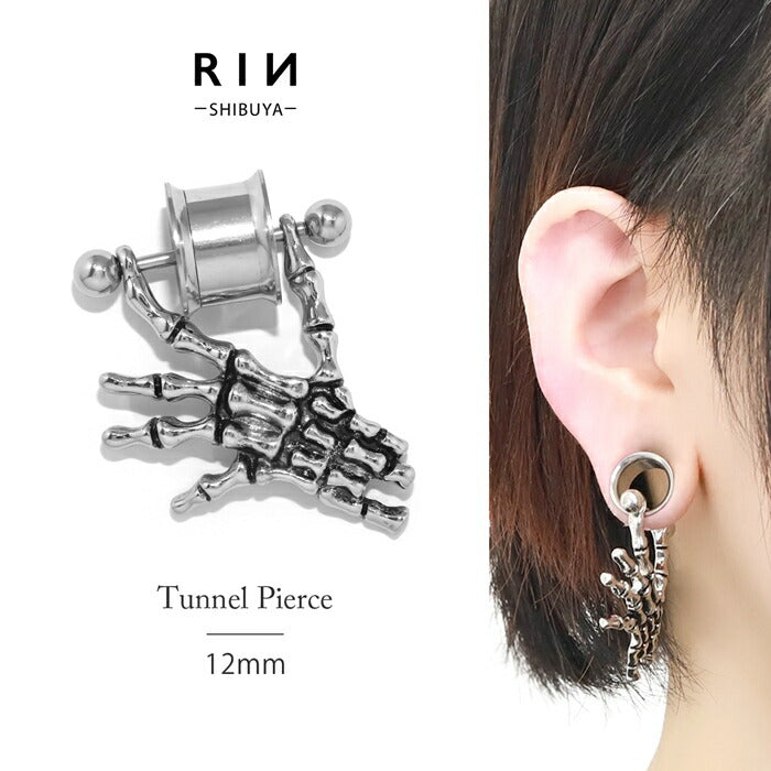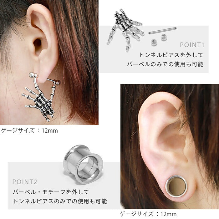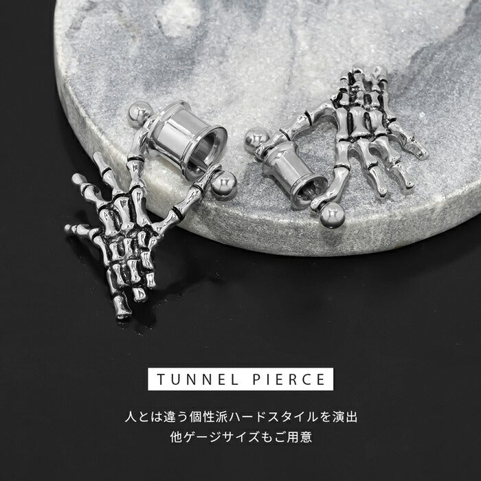 軟骨ピアス プラグ ホール 12mm ボディピアス スカル 骸骨 手 ハンド ガイコツ トンネル0011 ch-80-12mm