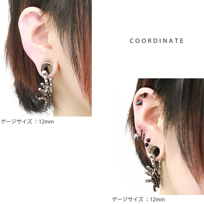 ch-80-12mm 軟骨ピアス プラグ ホール 12mm ボディピアス スカル 骸骨 手 ハンド ガイコツ トンネル
