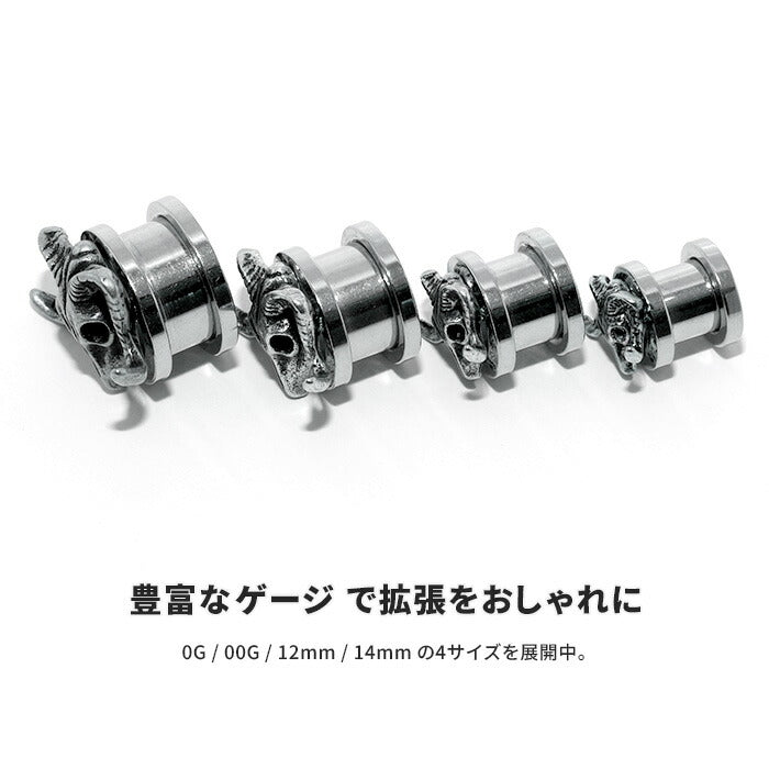 軟骨ピアス 12mm ボディピアス スカル バッファロー 牛 角 つの ドクロ 髑髏 12ミリ ピアス メンズ トンネル プラグ ホール サージカルステンレス 片耳用 山羊 ゴート バフォメット 頭骸骨