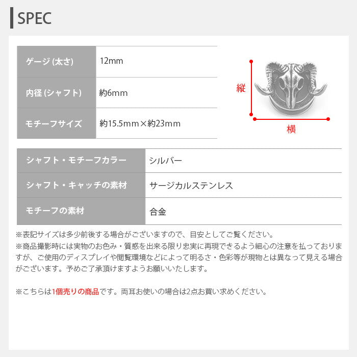 トンネル0012/ボディピアス軟骨ピアス 12mm トンネル スカル バッファロー 牛 ドクロ 髑髏/ch-81-12mm