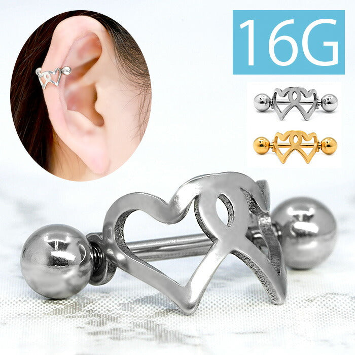 軟骨1216/ボディピアス 16G 軟骨ピアス シールド シールドピアス ハート サージカルステンレス ステンレス/ch-82