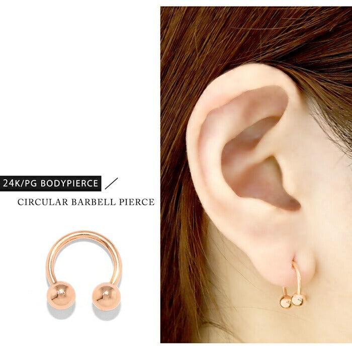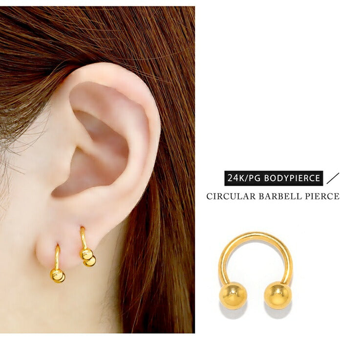 【24K 金属アレルギー対応】 ボディピアス 24K 24金 コーティング 18G 16G 14G サーキュラーバーベル つけっぱなし ゴールド ピンクゴールド 金属アレルギー対応 耳たぶ 軟骨ピアス 本物 日本製 片耳用