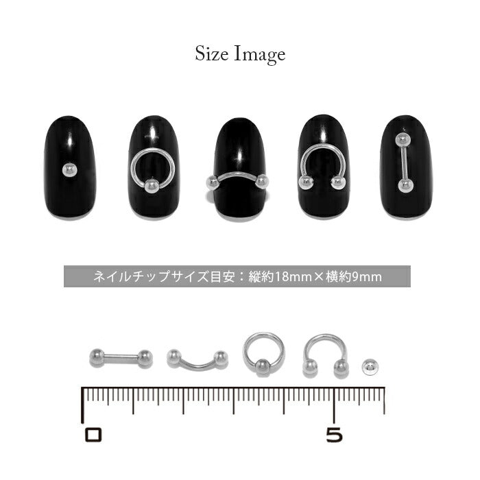 cus-2 ネイルパーツ ボディピアス 5個 ボディピアスネイル ピアスネイル シルバー ネイルパーツ アクセサリー バーベル ボール リング ビーズリング かわいい かっこいい シンプル ネイルアート メタルパーツ パンク ロック 韓国 推しネイル 3Dネイル ヴィジュアル系 【5種セット】