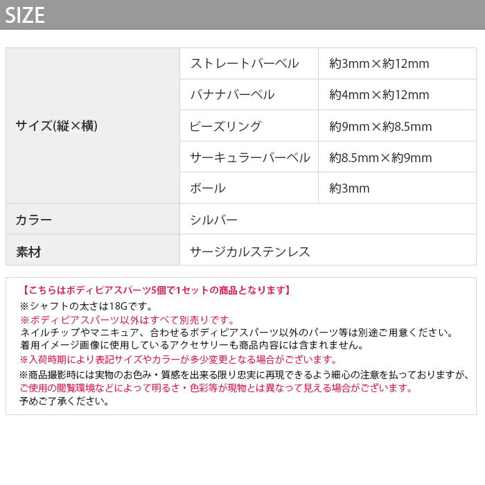 【こちらはボディピアスパーツ5個で1セットの商品となります】