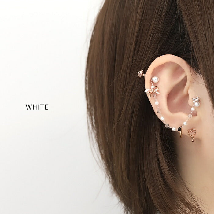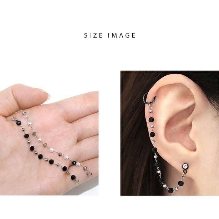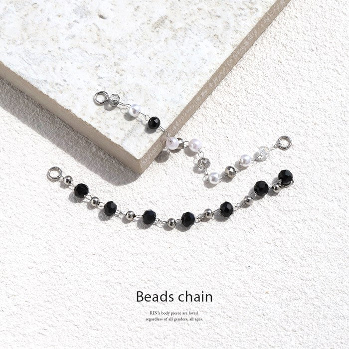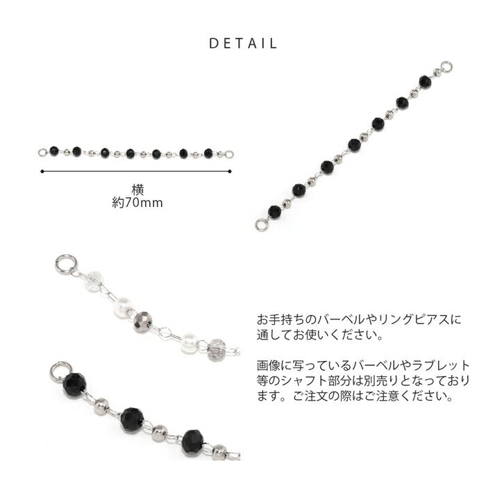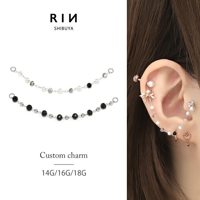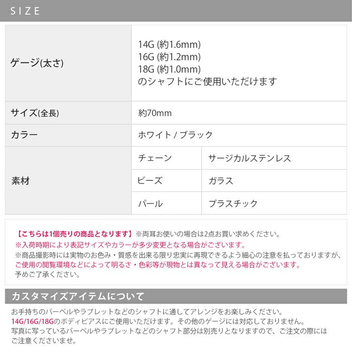 cus-6 ボディピアス 軟骨ピアス チェーン パーツ 14g 16g 18g サージカルステンレス 金属アレルギー 金属アレルギー対応 カスタム カスタマイズ ビーズ パール ガラス ホワイト ブラック 揺れる ゆれる かわいい 可愛い シンプル 片耳用
