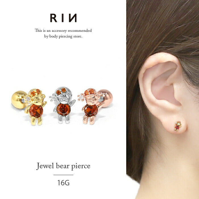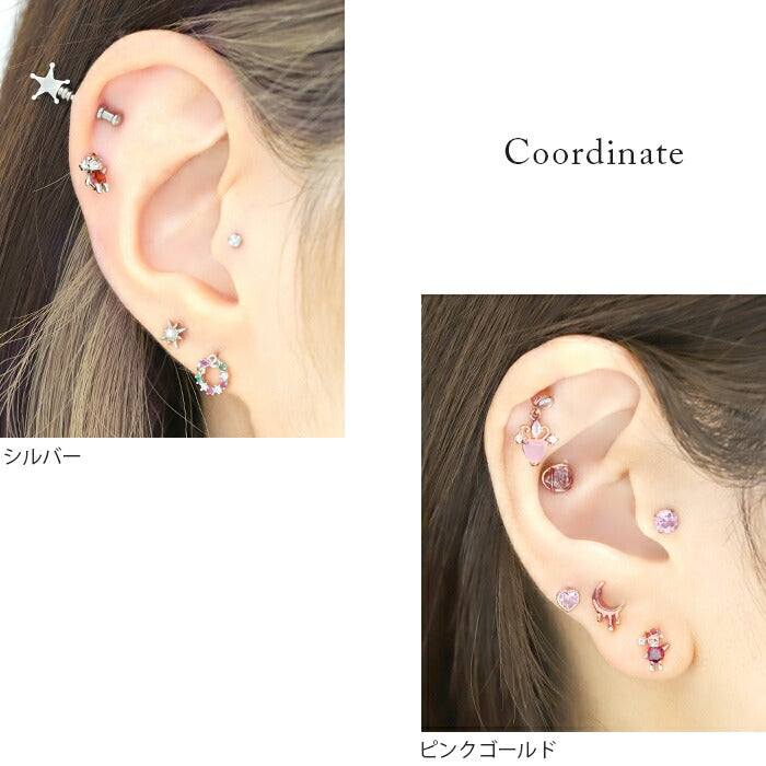 d-008 ボディピアス 軟骨ピアス 16G くま サンタクロース ピアス 金属アレルギー サージカルステンレス ストレートバーベル シルバー ゴールド ピンクゴールド ジュエル キュービックジルコニア ステンレスピアス ファーストピアス セカンドピアス レディース クリスマス 片耳用