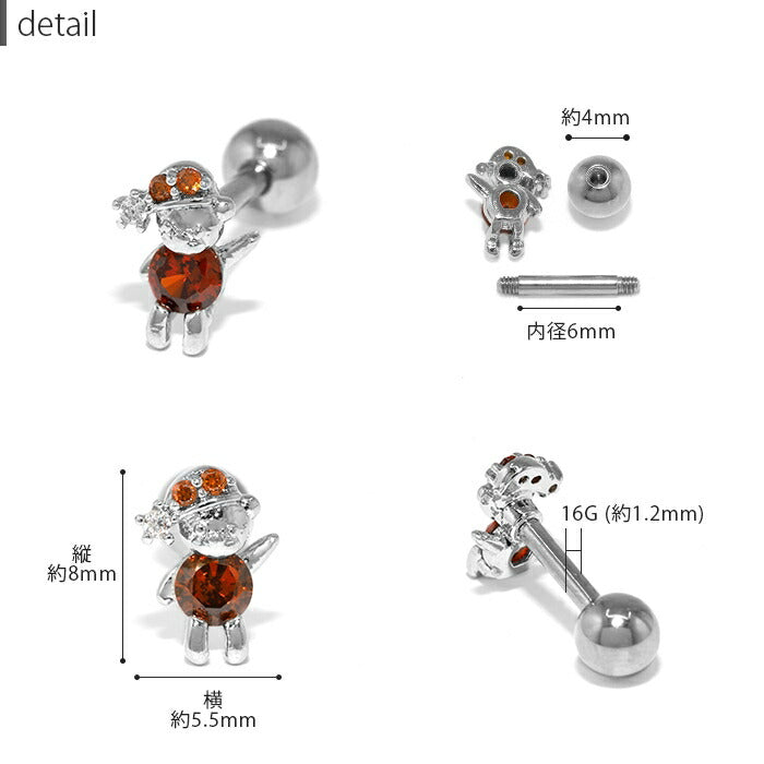 16G くま サンタクロース ボディピアス キュービックジルコニア ストレートバーベル 軟骨1356 d-008