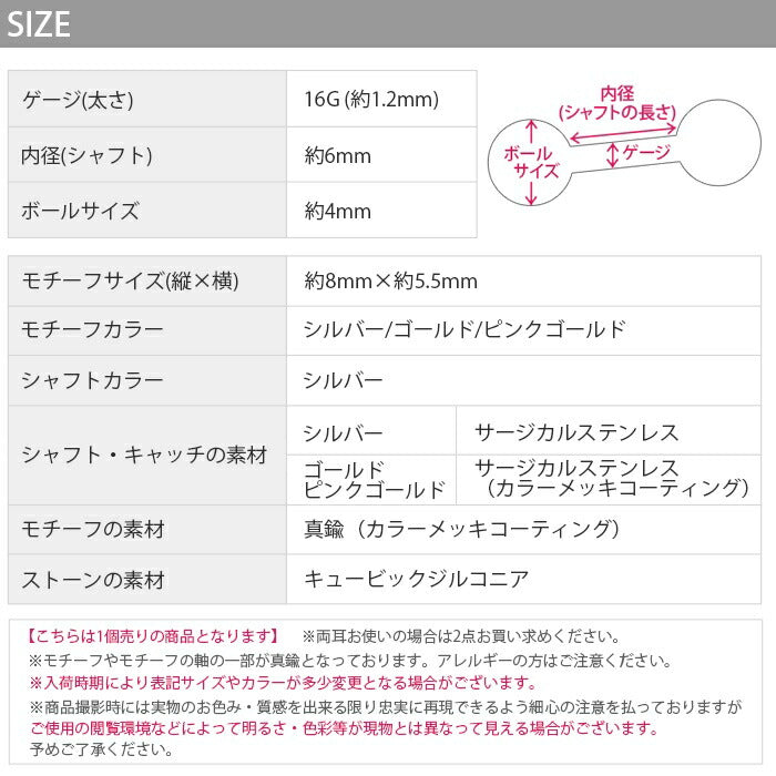 ※こちらの商品の一部カラーは、カラーのメッキコーティングを施しています。体質によって着けたままにされますと、メッキコーティングが剥がれる可能性がございます。
