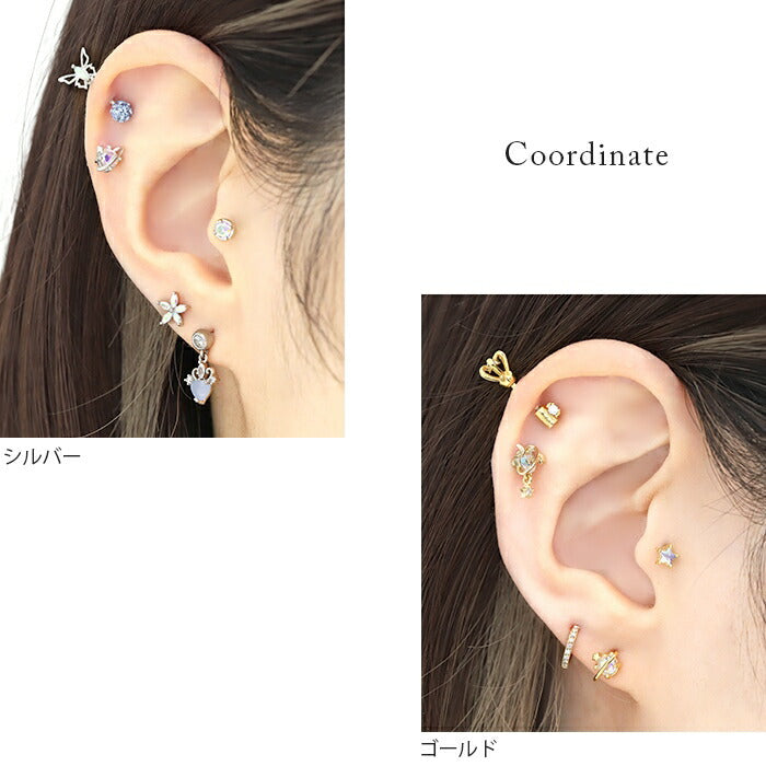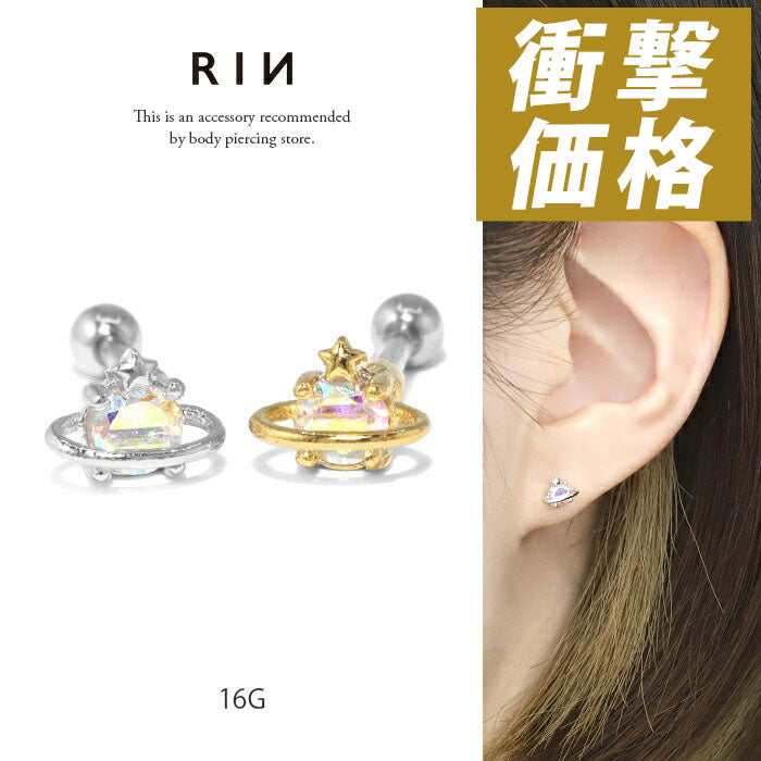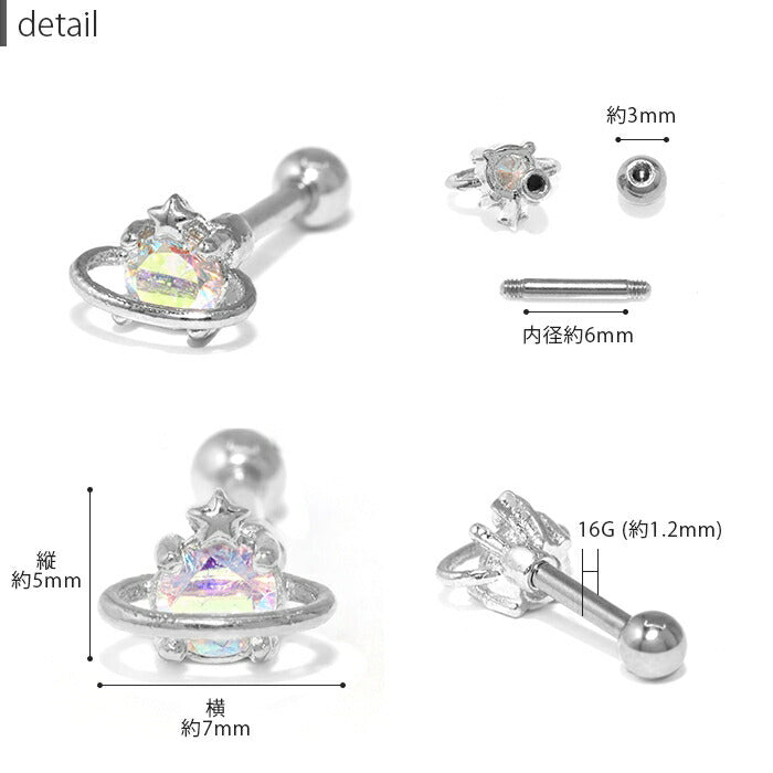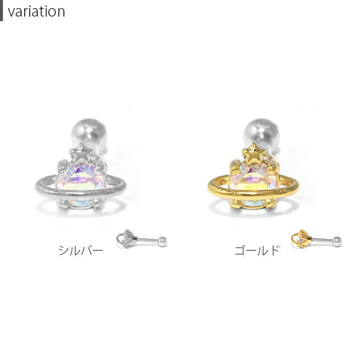 d-014 ボディピアス 軟骨ピアス 16G 星 土星 ピアス 金属アレルギー つけっぱなし サージカルステンレス ステンレスピアス セカンドピアス シルバー ゴールド レディース プラネット 宇宙 ストレートバーベル シンプル かわいい キラキラ キュービックジルコニア 片耳用