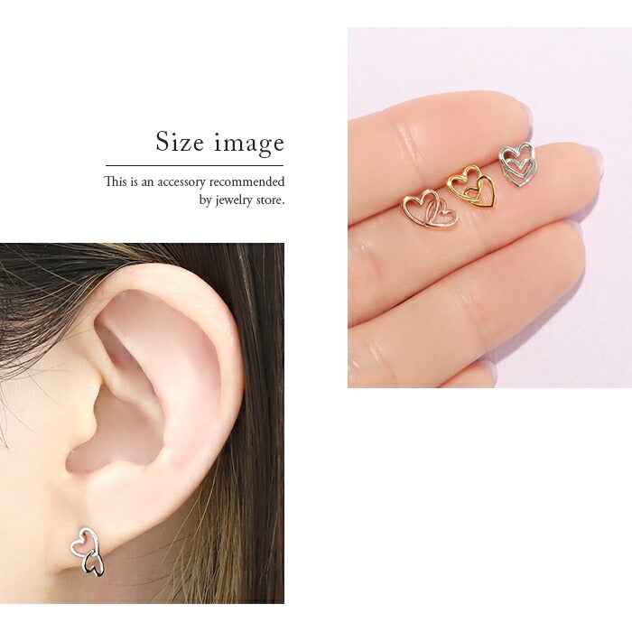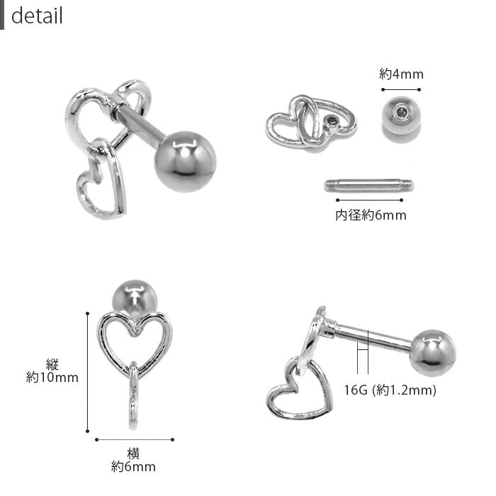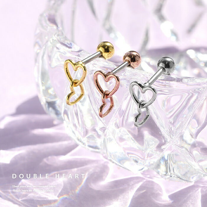 16G ハート ピアス ダブルハート フレーム 揺れる ストレートバーベル 片耳用 軟骨1377 d-017
