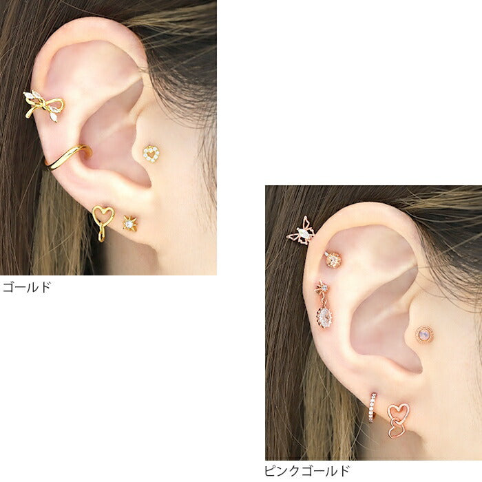 d-017 ボディピアス 軟骨ピアス 16G ハート ピアス 金属アレルギー サージカルステンレス シルバー ゴールド ピンクゴールド レディース ステンレス セカンドピアス ストレートバーベル シンプル かわいい チャーム フレーム 揺れる 耳 耳たぶ 軟骨用 片耳用