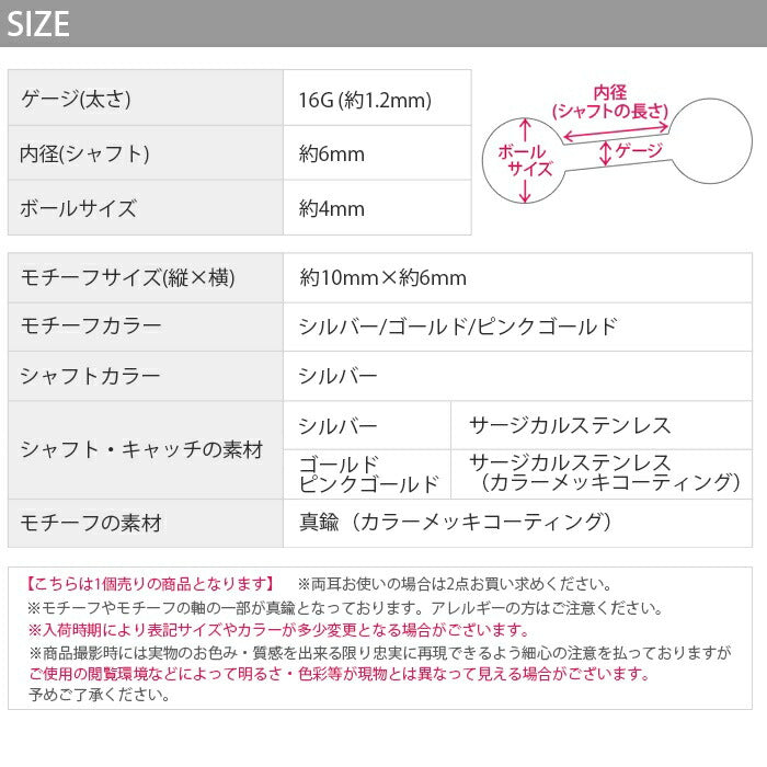 ※こちらの商品の一部カラーは、カラーのメッキコーティングを施しています。体質によって着けたままにされますと、メッキコーティングが剥がれる可能性がございます。
