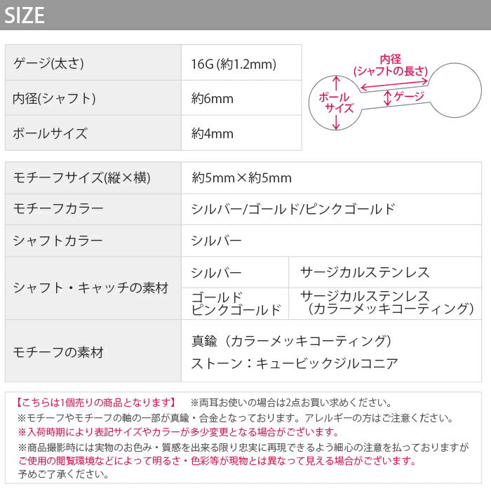 d-018 ボディピアス 軟骨ピアス 16G 星 スター ピアス 金属アレルギー サージカルステンレス シルバー ゴールド ピンクゴールド レディース ステンレス セカンドピアス ストレートバーベル シンプル キラキラ キュービックジルコニア かわいい 耳 軟骨用 片耳用