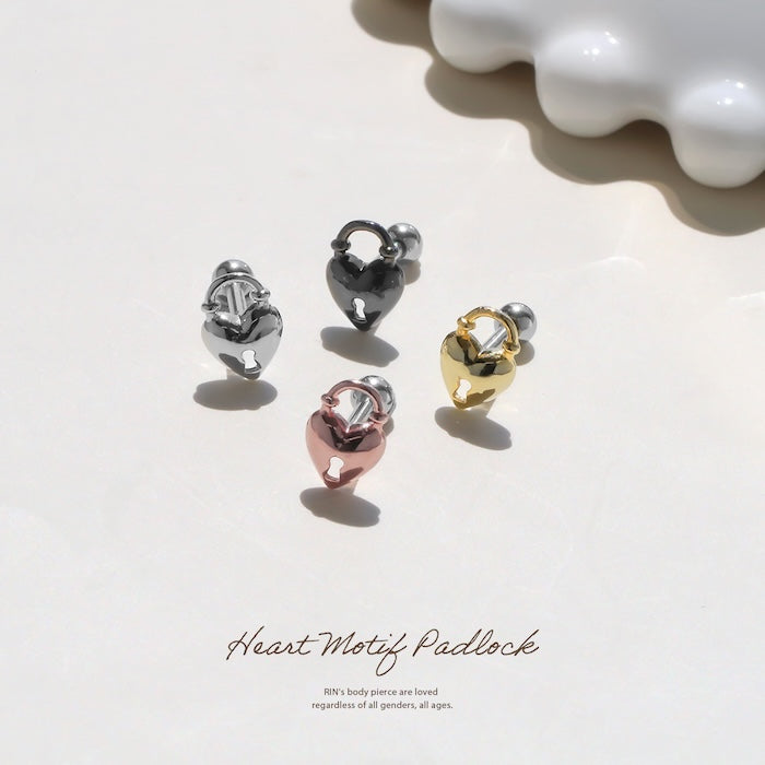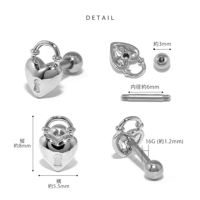 16G ハート 鍵 南京錠 パドロック ストレートバーベル 軟骨1381 d-020