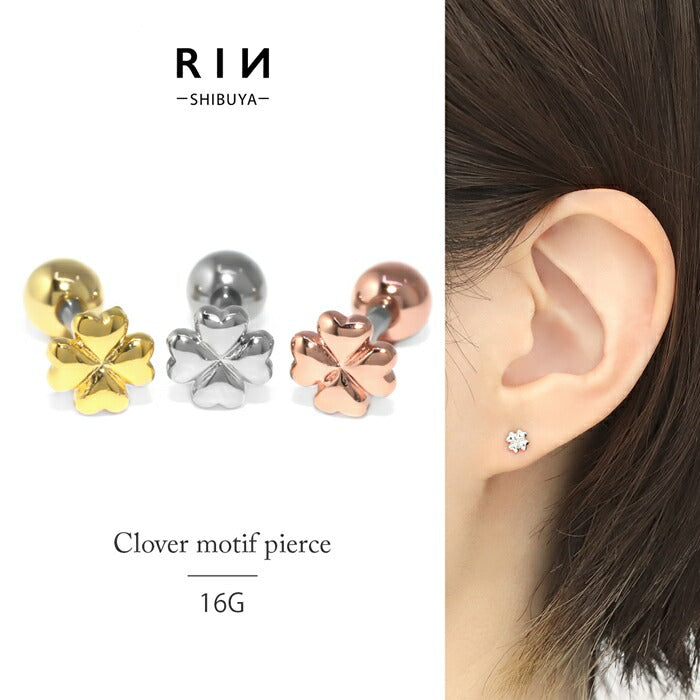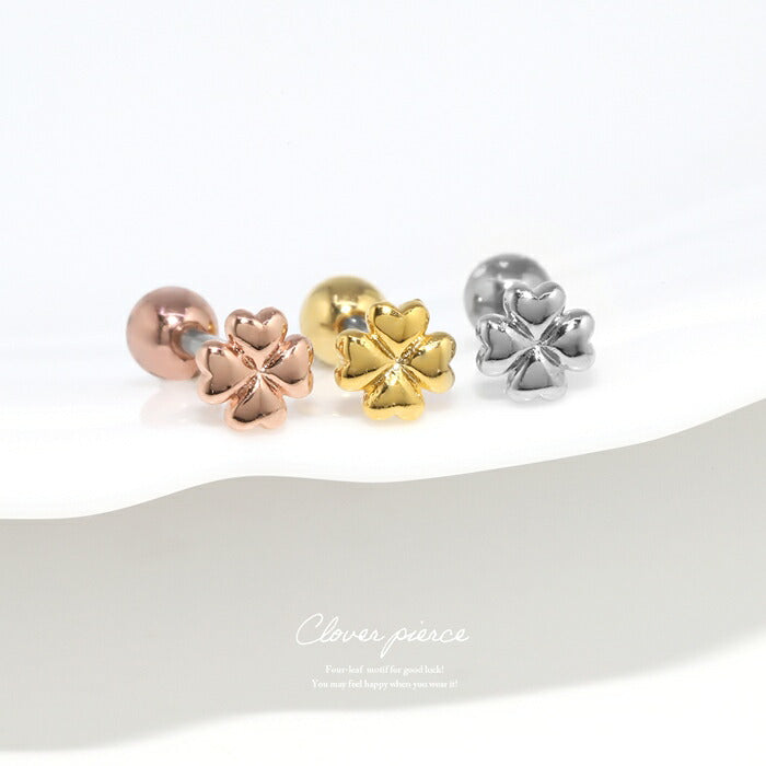 d-024 ボディピアス 16g 軟骨ピアス ピアス つけっぱなし クローバー サージカルステンレス 金属アレルギー 金属アレルギー対応 ストレートバーべル セカンドピアス レディース シルバー ゴールド ピンクゴールド 耳たぶ シンプル 片耳用