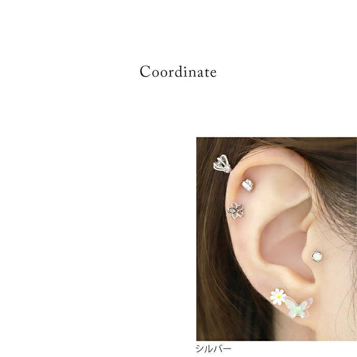d-025 ボディピアス 16g 軟骨ピアス ピアス つけっぱなし 花 フラワー サージカルステンレス 金属アレルギー 金属アレルギー対応 ストレートバーべル セカンドピアス レディース シルバー ゴールド ピンクゴールド 耳たぶ シンプル 片耳用