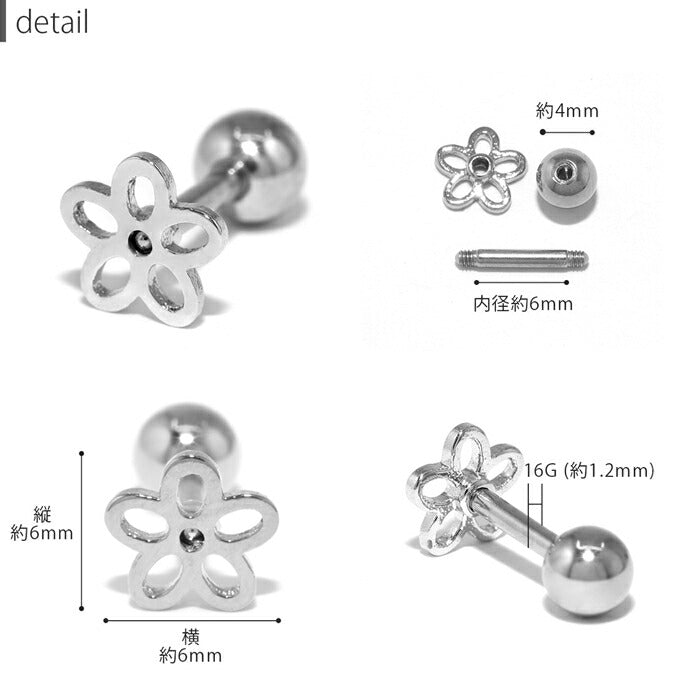 16g 軟骨ピアス 花 フラワー かわいい 透かし ストレートバーべル 軟骨1388 d-025