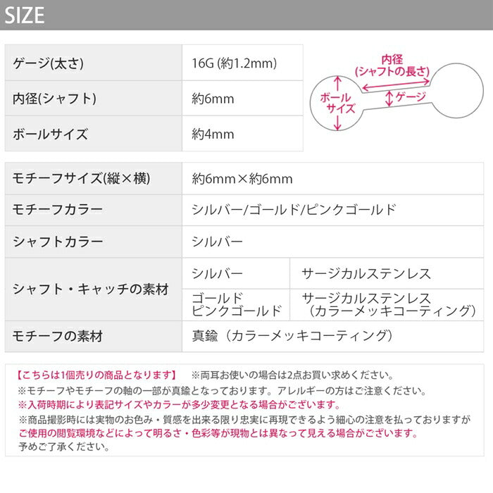 ゴールド・ピンクゴールド:サージカルステンレス(カラーメッキコーティング)