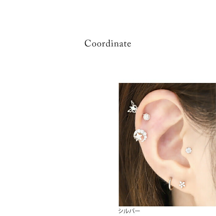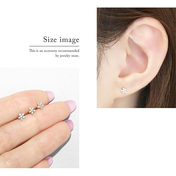 ★d-027 ボディピアス 軟骨ピアス 16G 花 フラワー ピアス 金属アレルギー つけっぱなし サージカルステンレス ストレートバーベル シルバー ゴールド ピンクゴールド レディース キャッチ キラキラ セカンドピアス シンプル キュービックジルコニア 片耳用