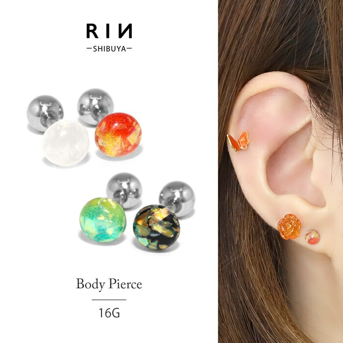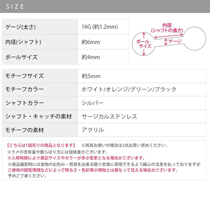 16G ボディピアス アクリル ラメ ホログラム ホワイト オレンジ グリーン ブラック バーベル ラブレット 軟骨1402 d-028