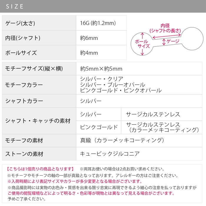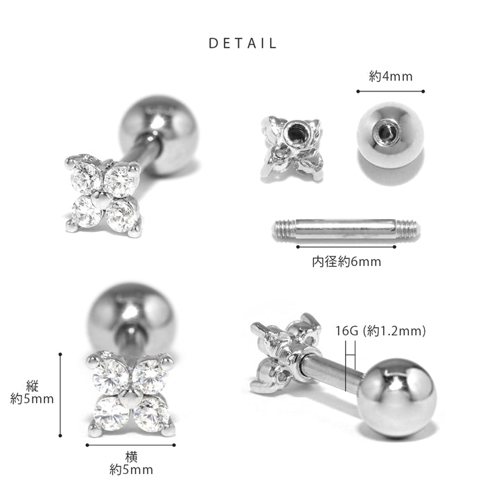 16G ボディピアス 軟骨ピアス ジュエルフラワー 花 かわいい プチ クリア ブルーオパール ピンクオパール ストレートバーベル 軟骨1407 d-031